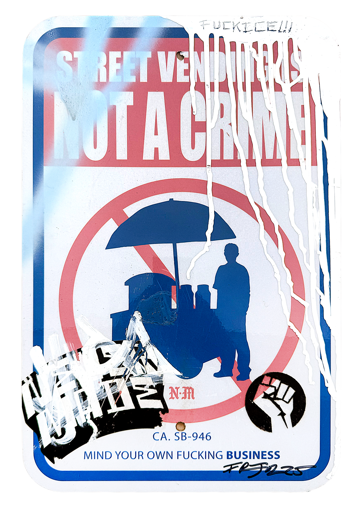 Street Vending is not a Crime 2025Francisco Reyes Jr. aka Never Madestreet sign on metal12” x 18”@nevermadePICK UP ONLY
