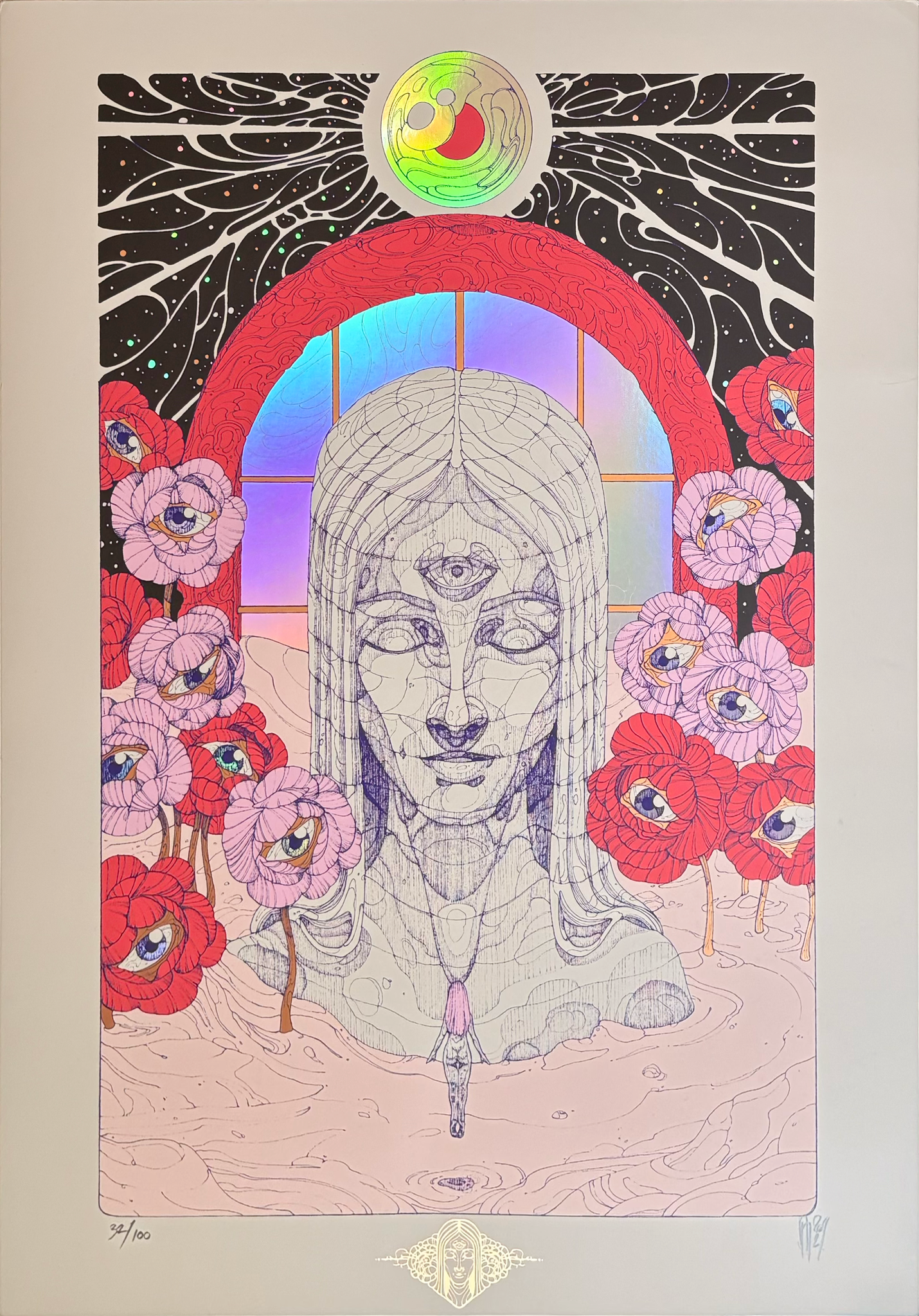 7-color screen print on holographic paper